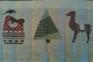 San Man's "Quaker 31" was stitched 2 over 2 for depth on 28ct white Monaco. I finished this with plaid backing fabric and a matching fabric wire hanger. Each little motif made this an enjoyable stitch.